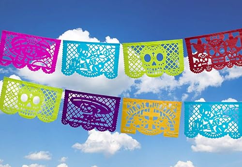 Altar de Ofrendas Dia de Los Muertos Mexican Papel Picado Tissue Paper Banner. Colorful Day of The Dead Decorations Medium Size Panels