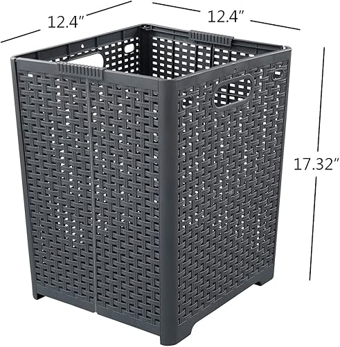1-Pack Plastic Collapsible Laundry Hamper, Foldable Laundry Storage Baskets, Gray