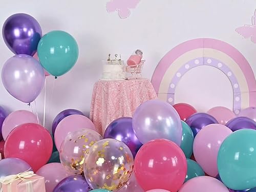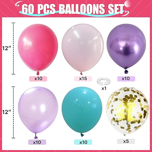 Blue and Orange Balloons, 60PCS 12 Inch Royal Light Blue and Orange Beige Balloon Confetti Balloons for Kids Space Theme Party Baby Shower Birthday Graduation Party Decoration(Pink Purple Teal,60PC)