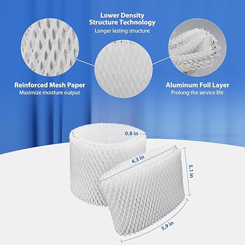 WF2 humidifier filter replacement are made of a double layer of absorbent mesh paper that works with an aluminum foil layer to trap minerals and pollutants in the water and keep your humidifier maintaining its peak performance and improving your breathing comfort, sleeping, nasal congestion and dry skin.