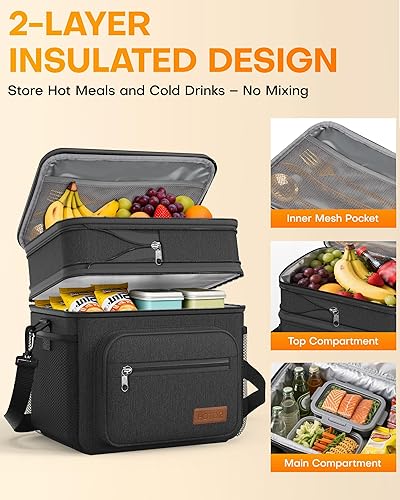 SPACIOUS & ORGANIZED: Stay organized on the go with multiple storage areas. The cooler bag includes two side pockets and two front zipper pockets for keys, phones, cards, snacks, or drinks. Inside the top compartment, a mesh pocket keeps utensils and ice packs separated. The HOTOR lunchbox helps you carry everything you need, perfect for workdays, outdoor activities, or trips.