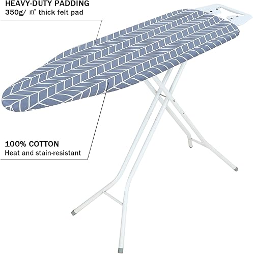 Ironing Board Cover and Pad Standard Size 15 x 54,3 Pairs of Hook and Loop Fastener Straps,Elastic Edges,Cotton Iron Board Cover with Scorch Resistant Thick Padding (Pattern C)(Pattern H)