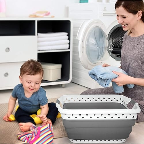 COMFORT GRIP HANDLES - This collapsible laundry hampers with two comfort grip handles makes it easy to carry multiple loads of dirty or clean laundry from room to room. Streamline your laundry organization with this portable plastic laundry hamper.