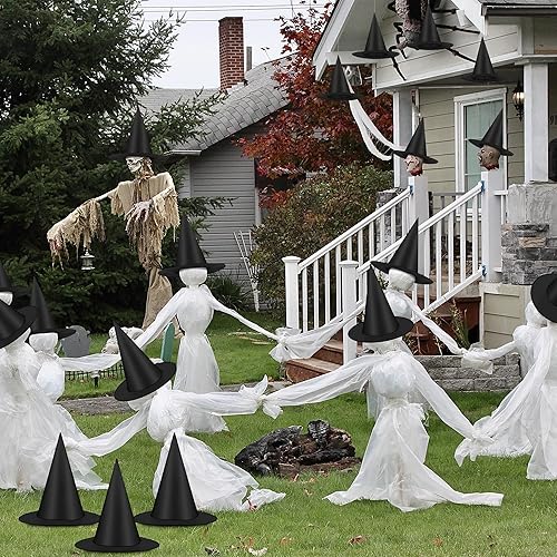 Luces 10 PCS Witch Hats, Hanging Witches Hat Halloween Decor, Black Wizard Costume Accessory Floating Witch Hats for Women, with 164 FT Rope Halloween Porch Decorations Indoor Outdoor(10 Pcs)