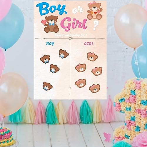 MISS FANTASY Gender Reveal Decorations - 54 Voting Gender Reveal Games Gender Reveal Ideas Boy or Girl Games Party Supplies for Gender Reveal Voting Use Gender Reveal Decor(Boy Or Girl Bear)