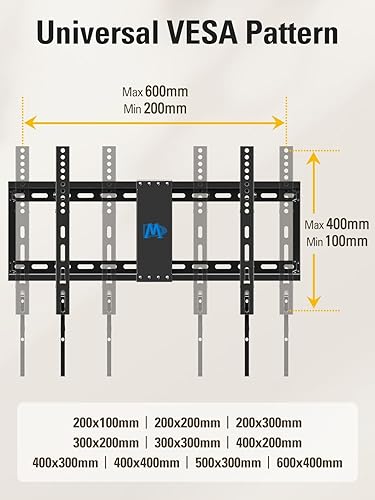 [TV Wall Mount and Suitability] The Mounting Dream TV wall mount is suitable for TV of 37-75 inches holding a weight of 132lbs with MAX VESA 600 x 400mm supporting 24 inches wood stud spacing. For better feel, you can check the weight of TV, VESA, wood studs spacing and blocked input. Kindly note that TV is just for reference. Patent no. 29/639, 502