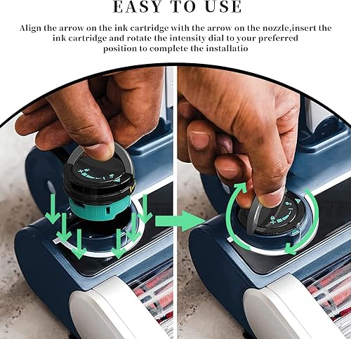 Easy installation. Align the arrows on the cartridge with the arrows on the nozzle,insert the cartridge, and rotate the intensity dial to your preference.