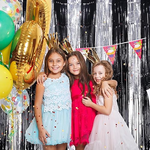 Purple Metallic Tinsel Foil Fringe Curtains, 2 Pack 3.3x8.3 Feet Party Streamer for Birthday Party Decorations, Halloween Decor, Foil Curtain Backdrop for Bachelorette Party(Black Silver,4 pack)