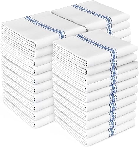 Zeppoli Classic Dish Towels - 15 Pack - 14" by 25" - 100% Cotton Kitchen Towels - Reusable Bulk Cleaning Cloths - Blue Hand Towels - Super Absorbent - Machine Washable(Blue Stripe,Linen Towels- 30 pk (M))